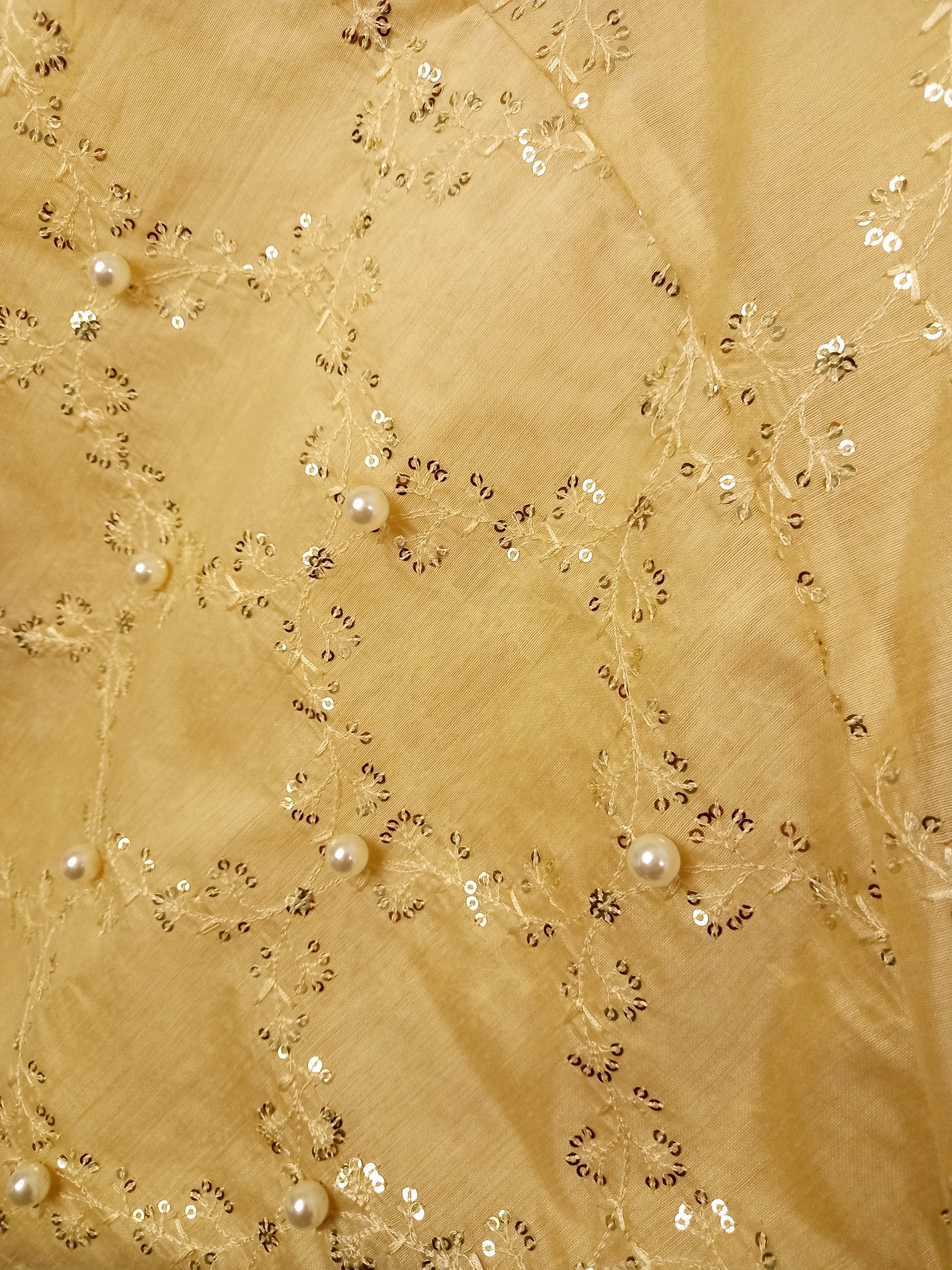 Elegant Silk Kimono embellished with scattered gold sequins and pearls.